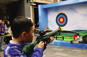 小朋友在少數(shù)民族體育花會上體驗射弩。(廣州市民宗局提供)