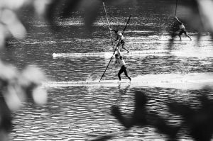 “獨(dú)竹漂”又稱“劃竹竿”,運(yùn)動(dòng)員赤足站立于一根楠竹上,以小竹竿當(dāng)槳,在水上漂行如履平地,有“一葦渡江”之妙。