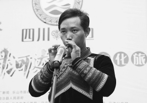 阿西日哈在馬邊首屆“姆河達斯”文化旅游節(jié)上吹奏馬布。