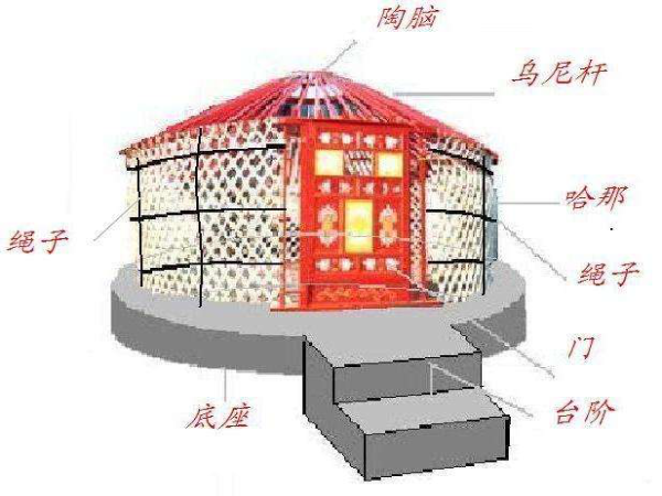 蒙古包主要由架木、苫氈、繩帶三大部分組成。