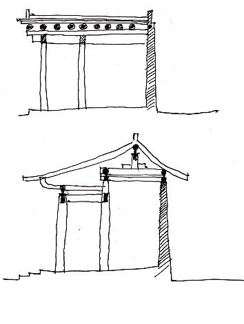 土坯墻建筑的建筑結(jié)構(gòu)主要是土坯墻和木制的柱子承重,還有一種是土坯墻和抬梁架一起承重,最后一種是土坯墻承重。土坯墻受限于自身的材料和工藝問題,所以建筑進深一般情況下較小。