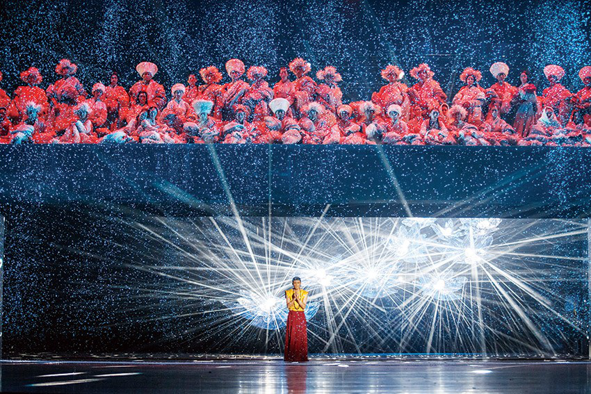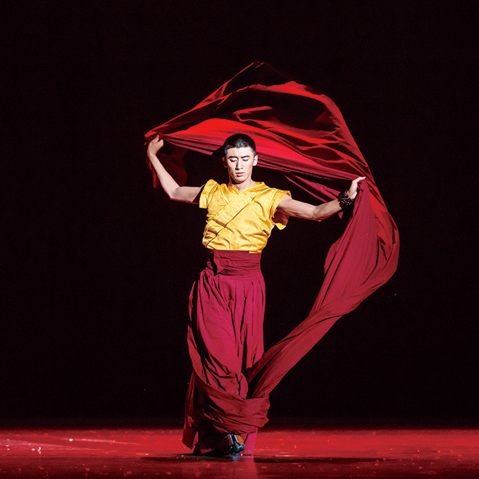 2015年12月27~29日,中央民族歌舞團(tuán)大型原創(chuàng)舞劇《倉央嘉措》在民族劇院隆重上演,引起轟動。這是2015年度國家藝術(shù)基金最高資助項目,也是中央民族歌舞團(tuán)建團(tuán)60余年來創(chuàng)排的首部舞劇。它由中央民族大學(xué)博士生導(dǎo)師丹珠昂奔教授編劇,國家一級導(dǎo)演、中央民族歌舞團(tuán)團(tuán)長丁偉擔(dān)任總導(dǎo)演,國家一級作曲家李滄桑、著名舞臺服裝設(shè)計師麥青等國內(nèi)知名藝術(shù)家聯(lián)袂制作。舞劇共分五幕,時長159分鐘,參與演出的舞蹈演員有60多人。劇組通過海選的形式,選出3名年齡分別為14歲、17歲、20歲的優(yōu)秀舞蹈演員扮演不同時期的倉央嘉措。整部舞劇通過豐富的舞蹈語言以及精心制作的音樂、服裝、舞美,將主人公倉央嘉措對故鄉(xiāng)、母親的熱愛以及對愛情的向往淋漓盡致地展現(xiàn)在舞臺上,同時集中展示了他身后燦爛而輝煌的民族文化。