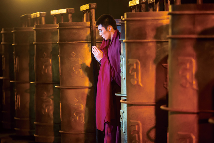 扮演倉央嘉措的是就讀于解放軍藝術(shù)學(xué)院的學(xué)生黃琛迪。丁偉說:“我跟很多知名演員都有過接觸,但是每個人都很忙,有好多錢要賺,沒有一個靜下心來的狀態(tài)。而這個演員的眼睛很干凈,還沒有被名利、榮譽侵?jǐn)_。我們把他帶到藏區(qū)去采風(fēng),臨走時他提出想到寺廟里住一段時間。我們到了甘肅夏河倉門寺,他在那里和僧人們一起生活,每天看他們誦經(jīng)。他逐漸進(jìn)入狀態(tài),慢慢體會到了倉央嘉措的精神世界。”