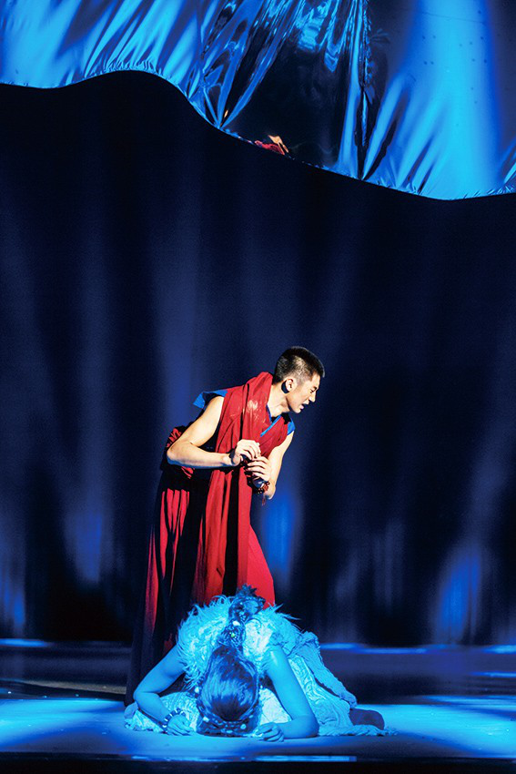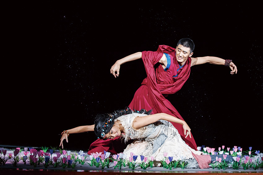為何我們會記住倉央嘉措?無論你是否到過西藏,你看了這部舞劇后最終都會明白,因為他是一位動人心魄的情僧。他的情詩,亦是情花,遍灑在這片土地上,令繁花盛開,情緣流長。我們難以忘懷的不是這位達(dá)賴?yán)飩髌娴纳矸?,而是他對家鄉(xiāng)深深的眷念,對情愛的難以割舍。歲月無情亦有情,它做了時間的信差,傳遞了300年前的故事。面對情感,無論多么堅強的心都會變得柔軟。所以每一個讀過倉央嘉措詩歌的人,都會陷入那濤濤的情海里難以自拔。