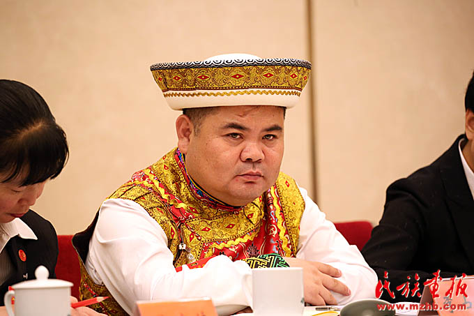 十九大代表、青海省互助土族自治縣林川鄉(xiāng)黨委書(shū)記李占魁(土族)在青海省代表團(tuán)討論會(huì)上發(fā)言 (滕俊 攝影)