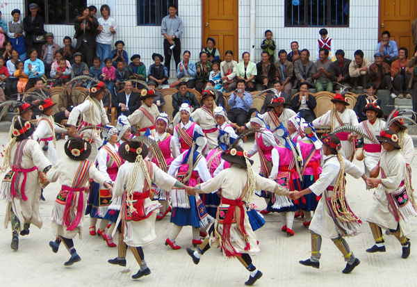德昌傈僳族婚禮上男女青年的“打跳”“蹢腳舞” 胡小平攝影 引自民族畫報