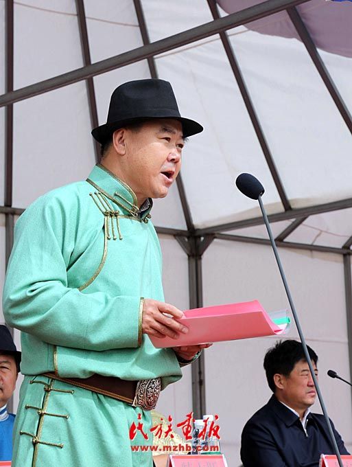 鄂爾多斯市民委主任雷?斯仁在開幕式上講話