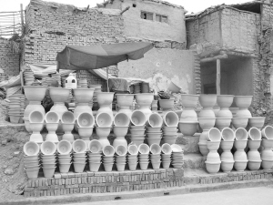 在過(guò)去的歲月里,土陶制品與維吾爾族人民的生活習(xí)俗緊密相連。生活中一日三餐都離不開的泥巴碗叫“塔瓦克”,洗手用的陶壺叫“吾肉克”,盛水的陶缸叫“庫(kù)甫”,洗衣用的陶洗衣盆叫“臺(tái)西臺(tái)克”,挑水用的土陶水桶叫“庫(kù)扎”。