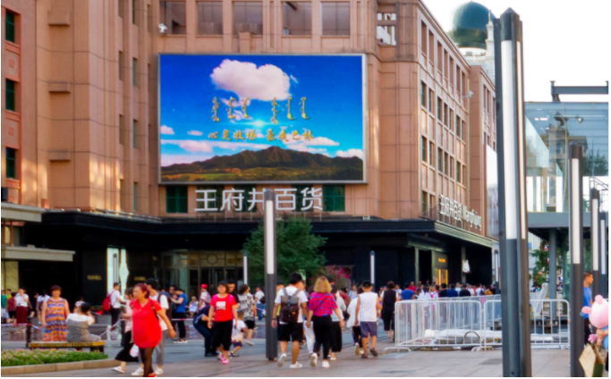 在北京王府井大街播放的30秒“心靈牧場 豪爽巴林”旅游形象宣傳視頻,每天滾動(dòng)播放120次(巴林右旗人民政府網(wǎng))