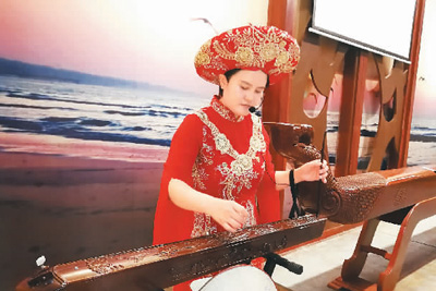 在京族文化傳承與保護(hù)中心,記者遇到63歲的獨(dú)弦琴藝術(shù)家蘇春發(fā)和32歲的講解員趙霞。“我5歲跟叔叔學(xué)獨(dú)弦琴,11歲拜姑丈為師,1991年以來,我親手教出來的學(xué)生已有300多人?!苯衲?月,蘇春發(fā)獲得國家文旅部頒發(fā)的“京族獨(dú)弦琴藝術(shù)代表性傳承人”證書。京族姑娘趙霞曾參加“京族哈妹組合”,進(jìn)入第十四屆CCTV青歌賽原生態(tài)組全國決賽,并榮獲團(tuán)體優(yōu)秀獎(jiǎng)。她左手搖柱,右手撥弦,當(dāng)場(chǎng)為我們演奏一曲悠揚(yáng)、委婉的京族民歌《過橋風(fēng)吹》,把京族少男少女的情動(dòng)心境演繹得非常唯美。
