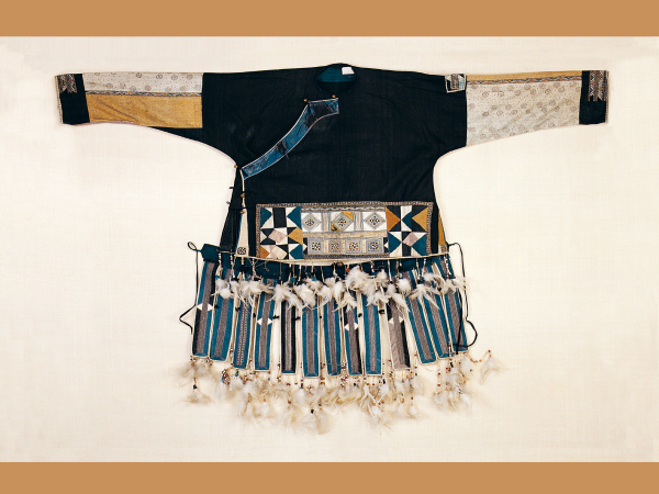 廣西三江侗族清代百鳥衣,為男子喜慶吉日跳蘆笙舞時(shí)穿用。中央民族大學(xué)民族博物館館藏