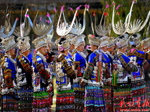 過(guò)苗年的時(shí)候,貴州苗族未婚少女穿戴起了體現(xiàn)家庭財(cái)富的銀飾