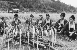 廣西三江侗族自治縣舉辦高山稻魚文化節(jié),當?shù)氐某檀濉⒘伎?、富祿等鄉(xiāng)鎮(zhèn)以稻田抓魚、烤魚、風情表演等活動,吸引游客前往體驗原汁原味的侗鄉(xiāng)稻魚文化,樂享金秋豐收喜悅。近年來,該縣傾力推進“種稻養(yǎng)魚”特色產(chǎn)業(yè),將傳統(tǒng)優(yōu)勢轉化為資源優(yōu)勢,并大力發(fā)展生態(tài)鄉(xiāng)村游,推銷高山生態(tài)健康食材,使群眾脫貧增收。圖為當?shù)厣贁?shù)民族婦女在該縣富祿苗族鄉(xiāng)富祿村稻田內(nèi)烤魚。