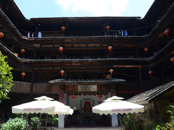 1995年它的建筑模型與北京天壇作為中國(guó)南北圓形建筑代表參加了美國(guó)落杉磯世界建筑展覽會(huì),引起了轟動(dòng),被譽(yù)為“東方建筑明珠”。 客家土樓建筑閃耀著客家人的智慧,它具有防震、防火、防御多種功能,通風(fēng)和采光良好,而且冬暖夏涼。它的結(jié)構(gòu)還體現(xiàn)了客家人世代相傳的團(tuán)結(jié)友愛(ài)傳統(tǒng)。試想幾百人住在同一幢大屋內(nèi)朝夕相處,和睦共居當(dāng)然是非常重要的,客家人淳樸敦厚的秉性于此也可見(jiàn)一斑。一進(jìn)入土樓,你立即就能感覺(jué)到那種深沉的歷史感和溫和的氣氛。 全樓的設(shè)施布局既有蘇州園林的印跡,也有古希臘建筑的特點(diǎn)。堪稱中西合璧的建筑奇葩 。