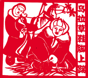 此外,撫順滿族剪紙在畫面上還經常結合滿文,使不同的人物、情節(jié)都凝固于畫面,豐富了作品的敘事內容。這種圖文并茂的剪紙造型,也是其一大亮點。