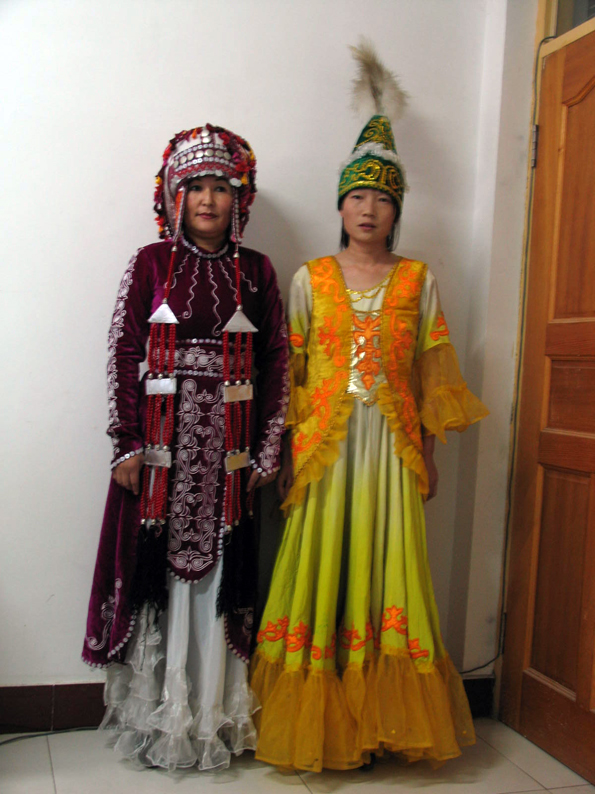 柯?tīng)柨俗巫迮右暷挲g的不同,所穿衣服的顏色也有所差異,年輕女子的顏色以白色、紅色燈色彩亮麗的顏色為主,而中年婦女和老人的衣服則多為黑色、深藍(lán)色等深色衣物???tīng)柨俗巫迥贻p女子大都喜歡穿連衣裙,裙子長(zhǎng)度到達(dá)腳面,在裙子的領(lǐng)口、袖口、前襟、腰間多繡有花草紋理的精致圖案,連衣裙下部多為千褶裙,裙面上繡著精美的傳統(tǒng)花紋,裙子底端則會(huì)連接縫上白色的裙邊,腳穿繡花皮長(zhǎng)靴,頭戴用貓頭鷹細(xì)毛點(diǎn)綴縫制帽檐和帽花的“艾力其克”氈帽,再配上能歌善舞的柯?tīng)柨俗巫迮屿`動(dòng)曼妙的舞姿,宛若仙女下凡,令人贊嘆不已。