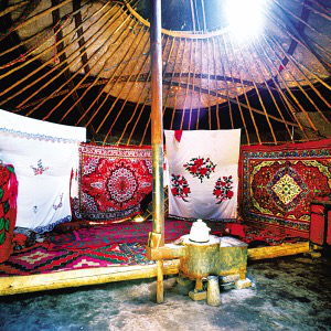 新疆維吾爾自治區(qū)木壘縣大南溝牧場(chǎng)上氈房?jī)?nèi)的裝飾
