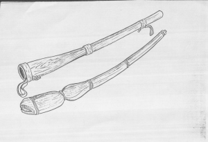 10月,我們坐火車,經(jīng)齊齊哈爾、牙克石,來到呼倫貝爾的鄂倫春自治旗阿里河鎮(zhèn),參加了旗里舉辦的慶祝國(guó)慶12周年和建旗10周年的慶典活動(dòng)。慶典上有一個(gè)鄂倫春文化展,展出了鄂倫春人的生產(chǎn)生活用具、手工藝品等。展覽結(jié)束后,旗政府就將展品全部交給我們,贈(zèng)送給中國(guó)歷史博物館。剛一出馬就收獲了這么多文物,這讓我非常興奮。