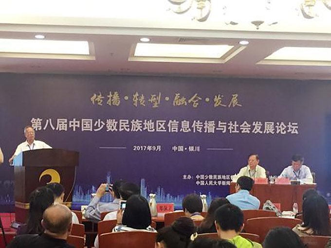 2017年9月16日,由中國少數(shù)民族地區(qū)信息傳播與社會發(fā)展論壇組委會、中國人民大學新聞傳播學院、寧夏大學新聞傳播學院聯(lián)合主辦,銀川市傳媒集團協(xié)辦的第八屆少數(shù)民族地區(qū)信息傳播與社會發(fā)展論壇在寧夏銀川舉行。來自全國42所高校的130多名專家、學者齊聚銀川,圍繞少數(shù)民族地區(qū)信息傳播與社會發(fā)展問題進行交流研討。
