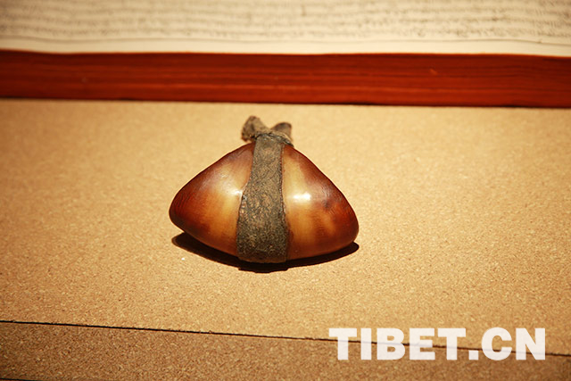 圖為把牦牛蹄掏空制作而成的藏藥袋