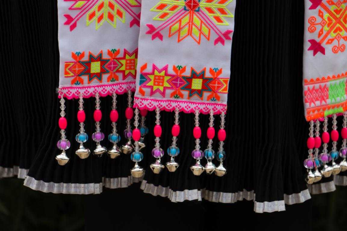 苗族婦女自古以來(lái)給人的第一印象都是勤勞樸實(shí),心靈手巧。五星村的苗族婦女們也很好的傳承了祖輩們的優(yōu)良品質(zhì),除了能持家,她們還擅長(zhǎng)刺繡。農(nóng)閑時(shí)三兩婦女約坐一起,拿出自己的針線,開始了她們的創(chuàng)作,苗族女性刺繡從不需要模板,所有圖案樣式皆構(gòu)