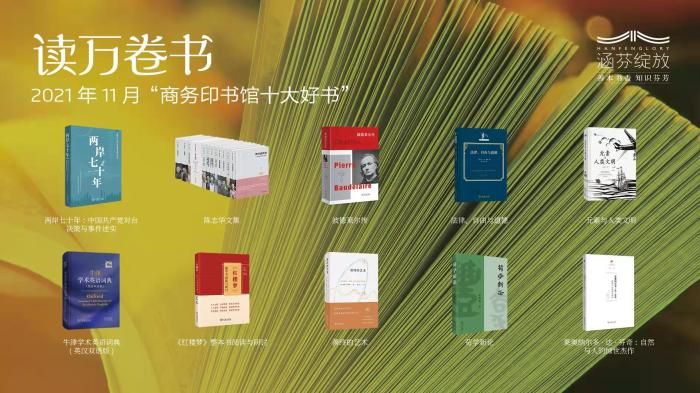 2021年11月“商務(wù)印書館十大好書”8日晚在直播間發(fā)布,《兩岸七十年:中國共產(chǎn)黨對臺決策與事件述實》《陳志華文集》《波德萊爾傳》《法律、自由與道德》《元素與人類文明》《牛津?qū)W術(shù)英語詞典(英漢雙語版)》《<紅樓夢>整本書閱讀與研討》《善終的藝術(shù):應(yīng)對衰老、病痛、死亡的實用指南》《荀學新論》《萊奧納爾多·達·芬奇:自然與人的驚世杰作》入選。