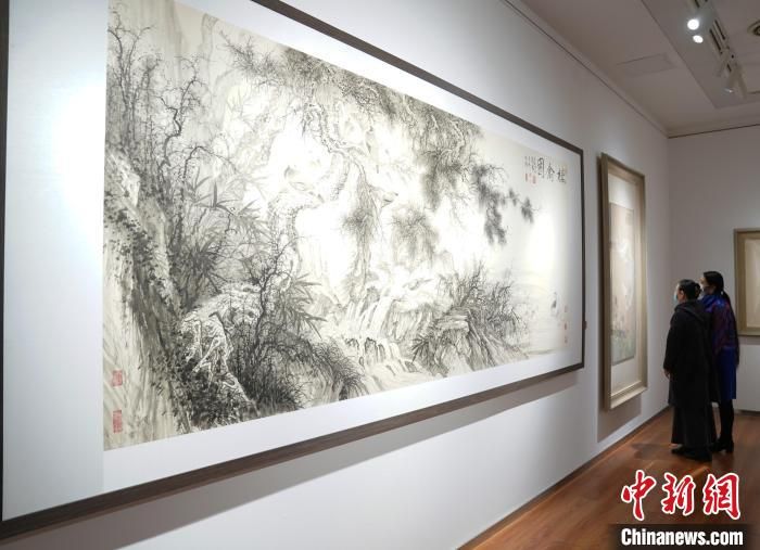 在展覽上,為慶祝中國(guó)藝術(shù)研究院建院70周年,田黎明和許俊,牛克誠(chéng)、周石峰、任清和曾三凱,劉萬(wàn)鳴和劉彥水,趙建成、崔進(jìn)和劉少寧分別合作的《新綠》《千巖霞映》《棲禽圖》《我見青山多嫵媚》4幅丈二尺幅的中國(guó)畫同時(shí)亮相。