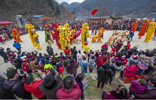 恩施人過(guò)年,離不開(kāi)群體娛樂(lè),從城鎮(zhèn)到鄉(xiāng)村,群眾參與程度高,以玩龍燈、玩獅子、劃采蓮船、打連廂、打耍耍為主。