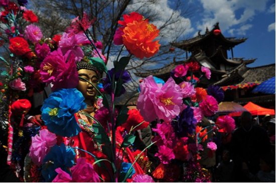 “二月八”是大理州劍川縣有著上千年歷史的白族傳統(tǒng)重要節(jié)慶之一,時間為每年農(nóng)歷二月初八日。其形成的主要因素是受佛教密宗文化的影響。相傳,農(nóng)歷二月初八日,釋迦牟尼生前為毗羅衛(wèi)國凈飯王的太子出皇宮到民間查看,看到人世間生、老、病、死等種種疾苦,遂立志創(chuàng)立佛教,普渡眾生。便于當(dāng)晚舍棄皇宮生活和太子的地位,踰城出家修行,尋求解除百姓種種苦難的道路,最后創(chuàng)立了佛教。明、清兩代至今,每年的二月八,廣大佛教信徒聚集在劍川縣城金華鎮(zhèn)和沙溪鎮(zhèn)寺登街,舉行盛大的紀(jì)念活動,抬著釋迦牟尼的太子雕像,一路鐘鼓齊鳴,焚香誦經(jīng),浩浩蕩蕩,漫游“四門”,常常聚集萬人,一般村嫗老婦也喜歡牽兒帶孫參加游行,并把自家的孩子裝扮成“太子”,以沾“佛”氣。
