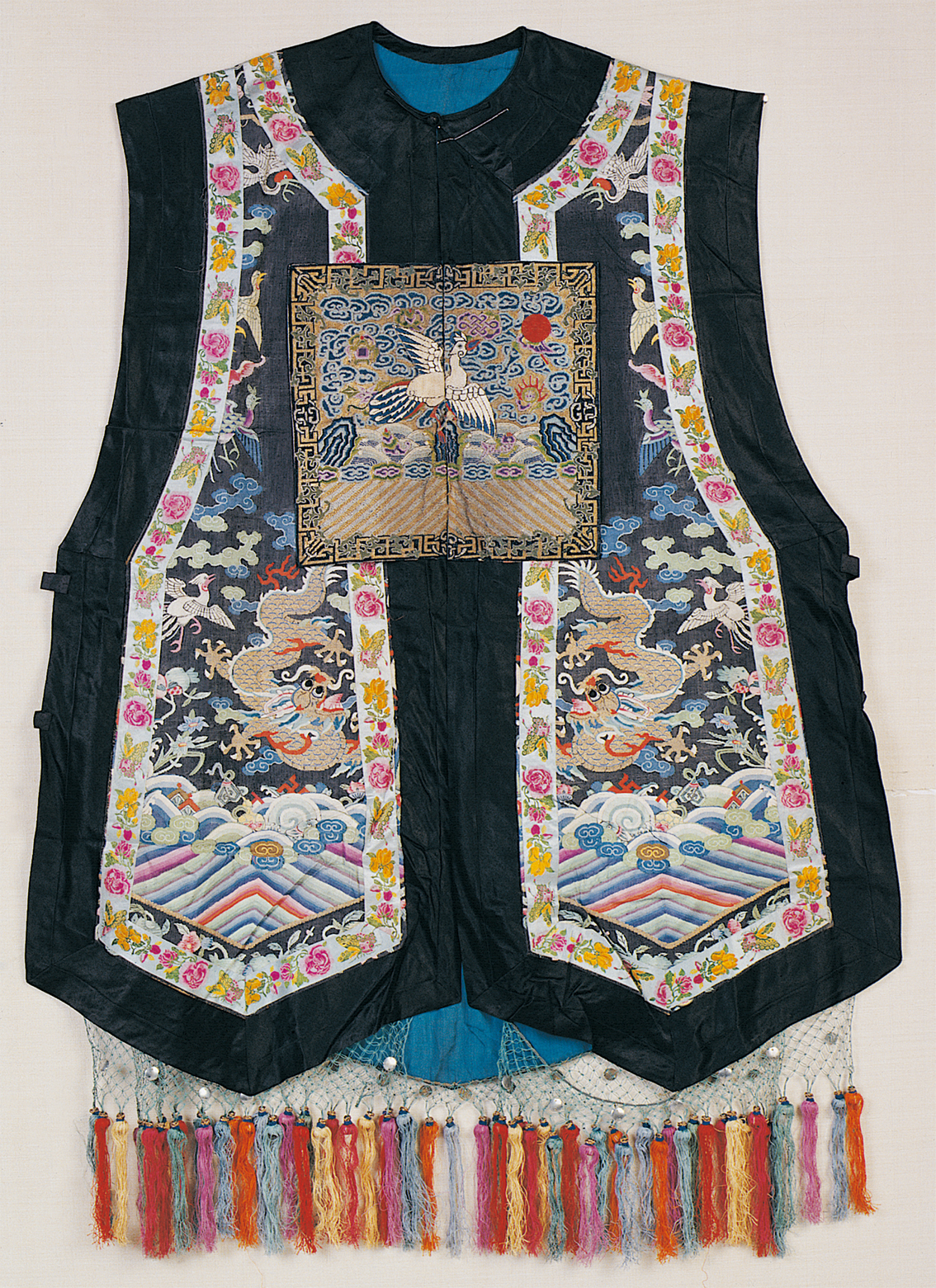 《史記·五帝本紀》載:“黃帝之前,未有衣裳屋宇。及黃帝造屋宇,制衣服,營殯葬,萬民故免存亡之難。”在五千多年前的新石器時代仰韶文化時期,可能就產(chǎn)生了原始的農(nóng)業(yè)和紡織業(yè),開始用織成的麻布來做衣服。據(jù)傳,黃帝之妻嫘祖發(fā)明了飼蠶和絲紡,衣冠服飾基本成制。殷商西周,冠服制度逐漸完善,春秋戰(zhàn)國時期,衣冠款式走向多元,冠服制被納入“禮治”范疇,從此漢族衣冠服制更加詳備。中原地區(qū)還出現(xiàn)了胡服戎裝,甚至相沿成風(圖為漢族清代七品文官女朝褂,中央民族大學民族博物館館藏)。