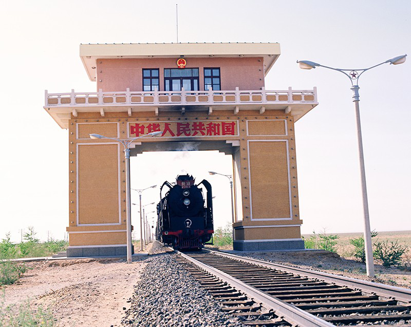 是夜,我乘坐的火車(chē)在邊境站二連浩特停了下來(lái)。車(chē)上響起《歌唱祖國(guó)》的音樂(lè),邊防武警在站臺(tái)站崗?!奥每屯緜?,歡迎來(lái)到中華人民共和國(guó)邊境車(chē)站二連!”大喇叭里的聲音充滿(mǎn)年代感。