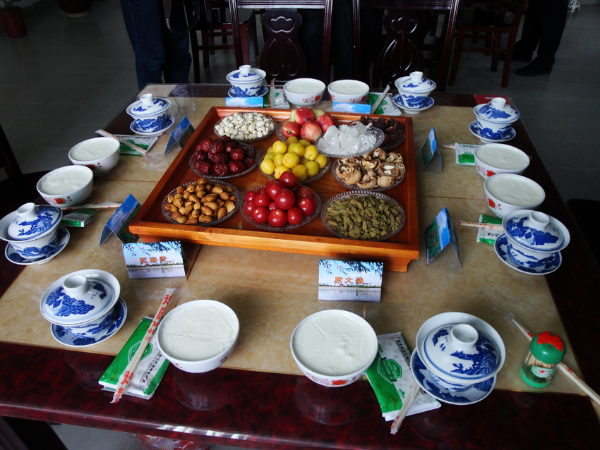 散居在各地農(nóng)村、山區(qū)、牧區(qū)的回族,其飲食習俗多受居住地影響。例如寧夏南部山區(qū)的回民,以土豆、蕎麥、莜麥、糜子、豌豆為主食,新疆阿爾泰地區(qū)回民則以奶食品為主,米面食品退居次要地位,這顯然是受哈薩克飲食習俗的影響,居住在云南迪慶藏族自治州和西藏一帶的回民,主食基本與藏民一樣,吃青稞、豌豆、三餐離不開糌粑和酥油茶。西北地區(qū)農(nóng)村的回族飲食,最有特色者當屬民間宴席?!熬磐肴小本褪腔刈宓恼谘缦?,一般在舉辦婚喪禮儀活動中,多用這種宴席招待賓客。