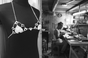 “銀飾胸罩”重約200克。據(jù)龍?zhí)柦榻B,他打制“銀飾胸罩”源于對妻子的愛。妻子長期在田間勞作,夏季汗水貼著內(nèi)衣,悶熱難受。于是,龍?zhí)枦Q定給老婆打制一件精致、涼爽的“銀飾胸罩”。這件耗時(shí)33天制成的“銀飾胸罩”,是用發(fā)絲般纖細(xì)的銀絲制成的,穿著舒適涼爽。