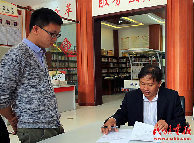 社區(qū)辦事大廳里,黨支部書記現(xiàn)場辦公解決實際問題