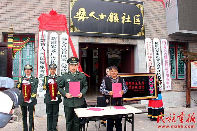 彝人古鎮(zhèn)社區(qū)與駐楚某部隊結(jié)成了軍民共促民族團結(jié)進步示范單位