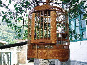 選材和傳統(tǒng)工藝是布依族鳥(niǎo)籠制作的兩大關(guān)鍵環(huán)節(jié)。最好的用材是優(yōu)質(zhì)畫眉竹、毛竹和青竹。竹材的采伐時(shí)間,有嚴(yán)格的要求,一般是在每年的秋收以后到第二年的正月間最為合適。其它時(shí)間采伐的竹材水性重,易蛀蟲(chóng)。至于竹材,則以生長(zhǎng)5到7年的竹子最為理想。這種年齡的竹料柔韌、堅(jiān)硬、鮮亮。布依族鳥(niǎo)籠全由精雕細(xì)鏤的各式竹節(jié)(條)組合而成,構(gòu)成部件做工精細(xì)。雕飾分花、素兩款,樣式有方、圓兩類。雕花鳥(niǎo)籠,從取材到最后組裝完成,需10天左右。鳥(niǎo)籠雕刻圖飾有“雙鳳朝陽(yáng)”、“二龍戲珠”和“蝴蝶結(jié)”等等。