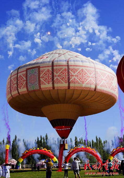 氈房是哈薩克族的傳統(tǒng)民居之一,是哈薩克族人游牧?xí)r居住的地方。圖中直徑長達21米、高23米、體積達2800立方米、通過世界紀(jì)錄協(xié)會認(rèn)證的這只阿克塞縣的旅游空中形象大使,是目前世上最大的哈薩克族氈房熱氣球