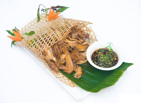 傣族傳統(tǒng)家常風味菜,特點是軟嫩鮮甜,原汁原味。制法是將鮮魚去鰓和內臟,洗凈,將蔥花、姜末、蒜末、青椒末、青姜葉末、芫荽末、野花椒葉末、薄荷、茴香葉末、香茅草葉末、草果粉、味精、鹽、料酒拌制成餡,裝入魚腹,頭尾折攏,再用香茅草捆成十字,外面包以芭蕉葉,埋入木柴燒后的炭或熱灰中燒熟,取出去掉芭蕉葉和香茅草,裝盤即成。