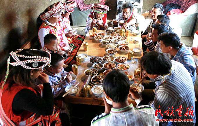 “過(guò)去我們一家吃除夕團(tuán)圓飯,有點(diǎn)肉就不錯(cuò)了,哪會(huì)有如此豐盛的宴席。你看如今這滿桌子十幾道菜,吃不完、喝不完,全靠黨和國(guó)家的政策好啊?!痹谡劦酱汗?jié)的變化時(shí),云南省維西傈僳族自治縣保和鎮(zhèn)臘八底村的蜂大興深有體會(huì)。