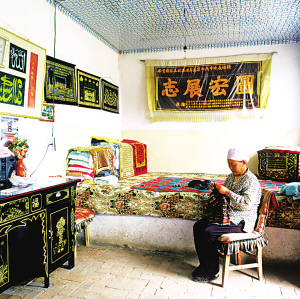 居室內(nèi)紅箱、畫柜耀人奪目,墻上掛有阿拉伯文字的對(duì)聯(lián)。屋檐下的臺(tái)階上,始終放著一個(gè)隨時(shí)洗手洗臉用的“湯瓶”,既節(jié)約又清潔。東西偏屋為晚輩居住,南邊為牲畜和草料房。東鄉(xiāng)人認(rèn)為家居四方平正,財(cái)源廣,子孫榮,門庭興旺。廚房是獨(dú)立的,砌鍋灶,有大案板,方便以面食為主的飲食習(xí)慣。