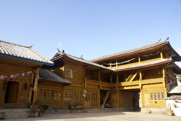 納西族的民居在民國時(shí)期普遍呈“用圓木縱橫相架,層面高至七、八尺,即加椽行,覆之以板,石壓其上”的“木...