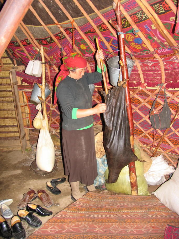 搗酸奶的柯爾克孜婦女(劉軍攝)