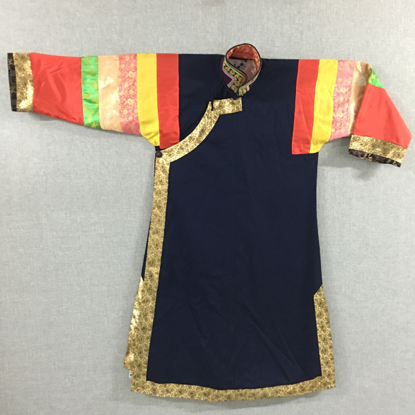 作為土族傳統(tǒng)文化重要載體的“彩虹衣”,從物質(zhì)和精神文化層面承載著土族歷史文化的重要信息。民族文化宮博物館收藏的這件土族立領右衽大襟五色袖女子“彩虹衣”,歷史悠久、制作精良,是我們了解和研究土族傳統(tǒng)文化的重要實物資料。