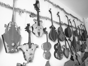 何曉制作的東布爾各具形態(tài),其中融合了其他民族樂器的特點(diǎn)。