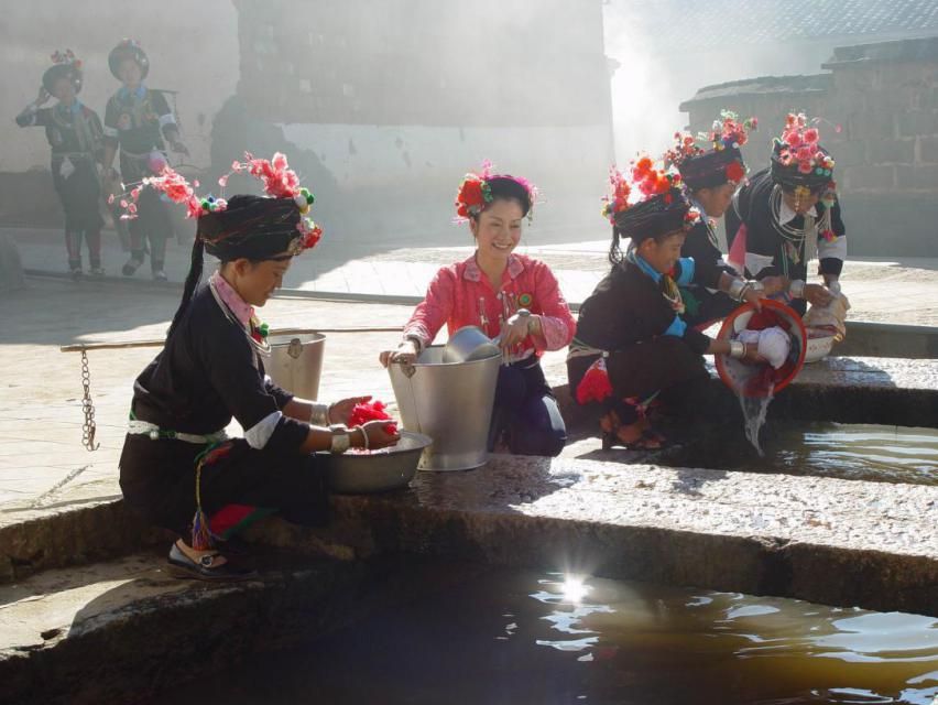 各地男子的服飾大同小異,均留短發(fā),未婚男子包一頭或兩頭鎖彩邊的白布或黑布包頭,已婚男子包藏青色布包頭。青年男子的包頭上往往插有鮮花或絨球飾。穿藍(lán)、白、黑等素色斜紋布對(duì)襟布扣袢上衣,黑色或藍(lán)色長(zhǎng)褲,系黑色綁腿。未婚婦女留長(zhǎng)發(fā)盤(pán)辮。穿白、藍(lán)色對(duì)襟銀扣上衣,黑、藍(lán)色長(zhǎng)褲。系繡花飄帶黑布裙。