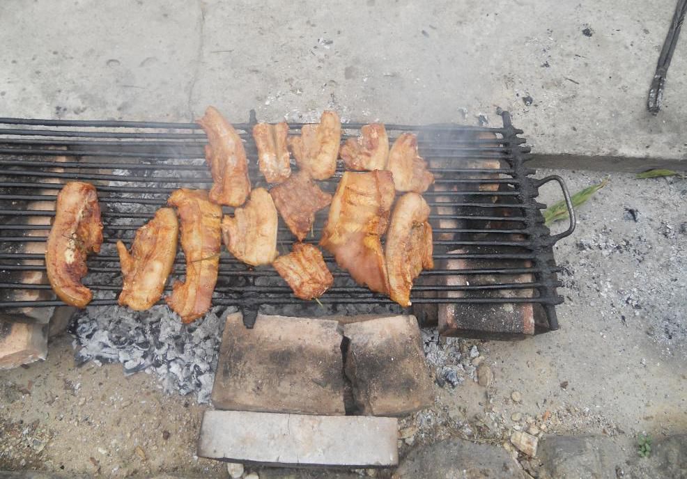 肉類(lèi)多以豬肉、雞肉等蓄禽類(lèi)肉蛋為主。逢年過(guò)節(jié),以豬肉為原料烹調(diào),能做出各種不同的花樣飯菜。隴川地區(qū)的風(fēng)味名菜“火燒豬”,做法和吃法獨(dú)特,別具風(fēng)味。在副食品種類(lèi)中,瓜果、豆類(lèi)、蔬菜的種類(lèi)最多。蔬菜以菜園自留地種植為主,還兼采野生菜輔于飯食,如香菜、水芹菜、魚(yú)腥草、香椿、蕨菜、竹筍等,野生菌類(lèi)也是阿昌族喜歡的副食品。阿昌族半山半壩地區(qū)的可食菌類(lèi)品種繁多,共有50多種。