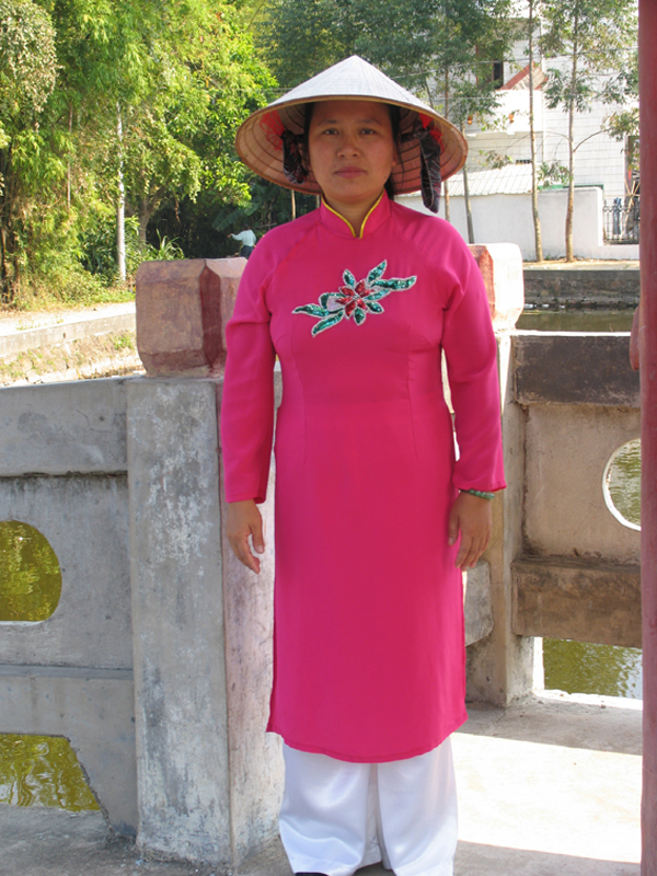 在古籍資料《防城縣志》中這樣記載:“安南人的服裝,男衫長過膝,窄袖袒胸,腰間束帶;女衫長不遮臀,褲闊……”從此項描述中可以大致知道京族早年傳統(tǒng)服飾的概況。