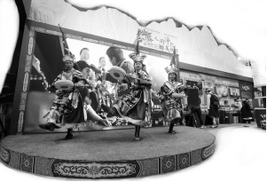 首屆中國(guó)(武漢)文化旅游博覽會(huì)上,西藏林芝展區(qū)的表演。