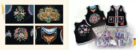 牛街境內(nèi)這兩個(gè)彝族支系的服飾,除頭飾和領(lǐng)合差別較大之外,其它部分由衣服、圍腰、花鞋等組成。襯衣以白色為主,領(lǐng)褂以黑色為主,對襟鑲邊。圍腰以黑色面料為主,上繡牡丹等大花,兩邊各一花瓶,分長、短兩種。長圍腰訂有兩根掛帶,掛帶有銀質(zhì)掛帶盤,掛帶盤各訂三絲。褲子顏色以深黑色為主。鞋子多為布鞋,鞋底以裱布包白布,以底線密縫,分為三層,中間有毛邊,鞋面黑色繡花,所繡花為喜字、假喜字、撲魚、提籃等花樣。