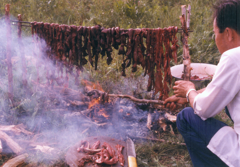 肉食分為家畜家禽和野獸野禽以及魚類等,吃法有曬、煮、烤等,但是不炒,其中“手把肉”最為著名。布特哈、齊齊哈爾、璦琿等地達(dá)斡爾族因定居普遍養(yǎng)豬,年節(jié)時(shí)宰殺。布特哈地區(qū)因狩獵還占有一定比重,肉食以袍子及野豬等獸肉為主。